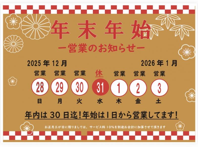 年末年始のお知らせ